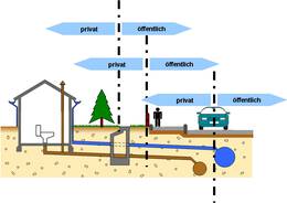 Wo die Grenze zwischen privater und öffentlicher Abwasseranlage liegt, ist in der örtlichen Entwässerungssatzung Ihrer Stadt oder Gemeinde festgelegt. Fragen Sie dazu den Sachbearbeiter Ihrer Stadt oder Gemeinde.
